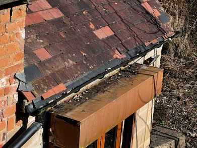 Blocked and defective rainwater goods, preventing effective drainage of the roof